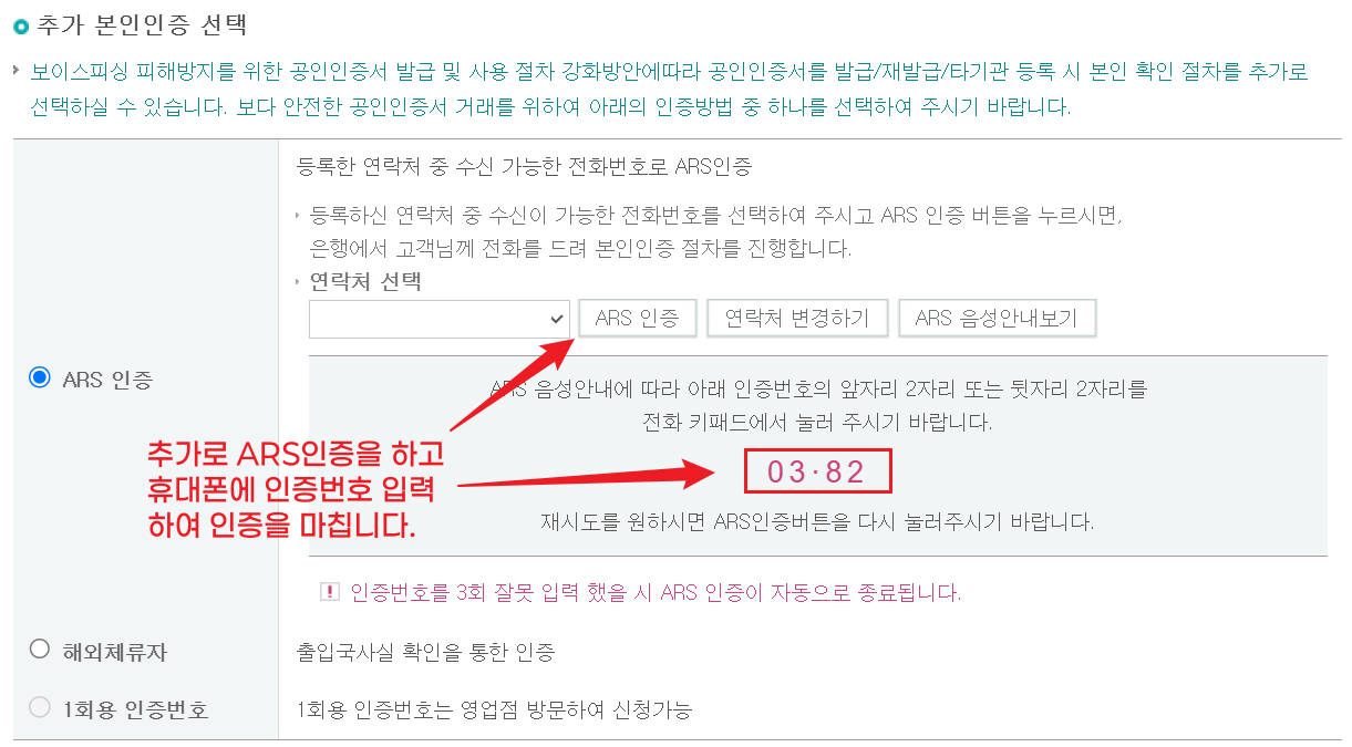 4. 추가인증 선택 후 ARS 전화인증 완료함.