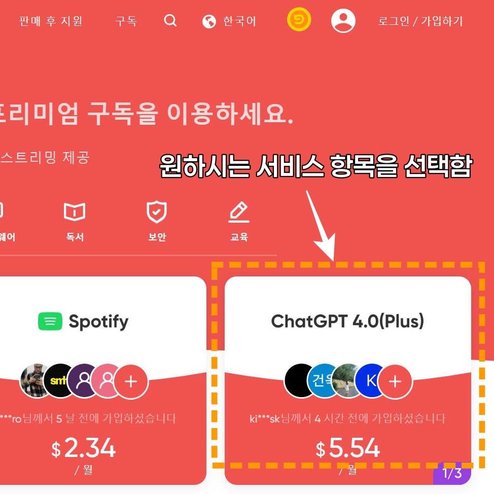 2. 구독화면으로 들어가게 되면 아래와 같은 화면이 나옴.