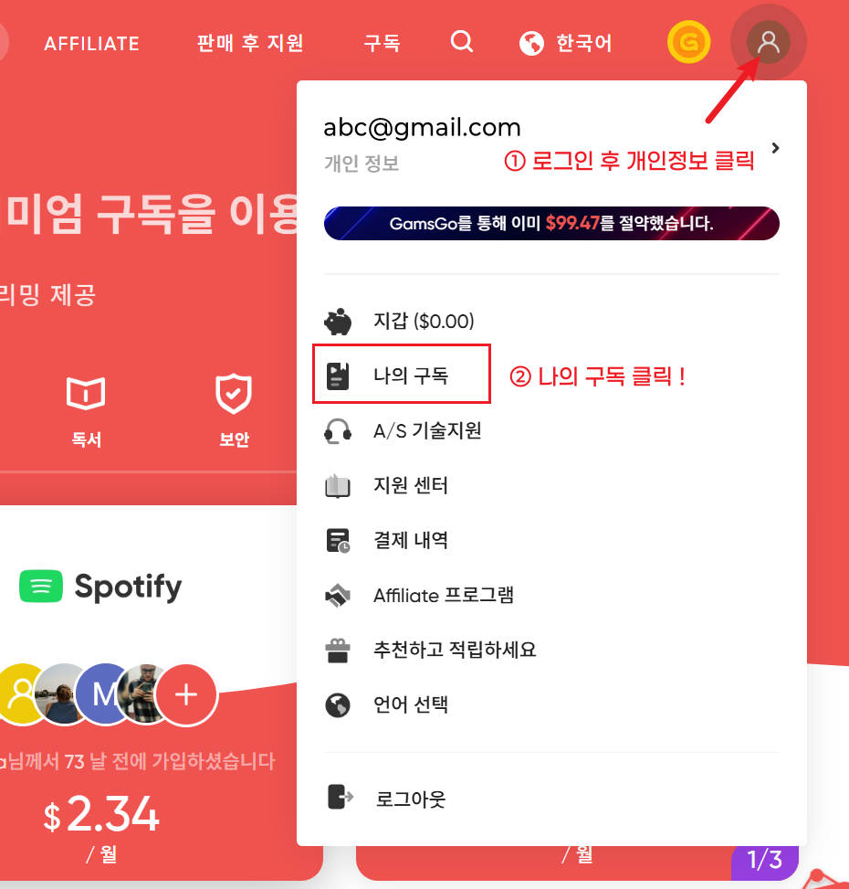 겜스고(GamsGo) 이용방법(로그인, 구독)