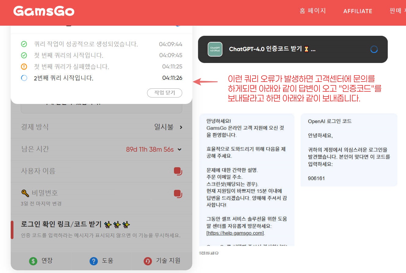 쿼리 로딩이 계속 뜨면서 진행이 안된다면 겜스고에서는 "문제에 대한 간략한 설명, 주문 이메일주소, 스크린샷"을 달라고 합니다.